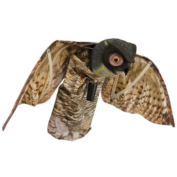 The Bird X Prowler Owl is a decoy designed to scare away nuisance birds and small animals from your property. It is designed to resemble a great horned owl, an aerial predator feared by many species of birds and small animals. Its realistic appearance and moving wings prevent acclimation by pests.