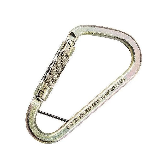 The Carabiner Large Eye Twist Lock Steel is made from cold forged and heat-treated steel.