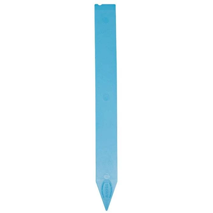 These blue plant stakes feature a durable plastic construction. They measure 12 inches tall and 1-1/4 inch wide. Their 60-mil thickness makes them especially durable. Each box contains 100 stakes.