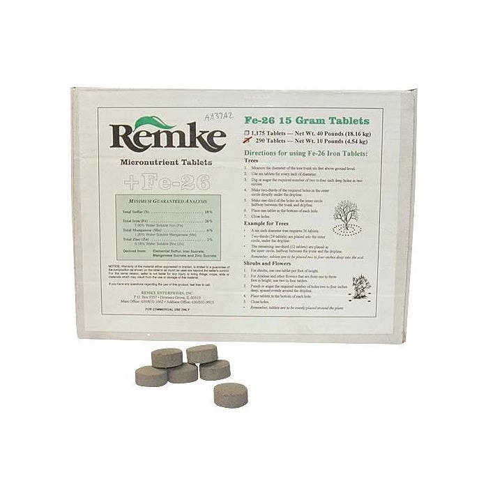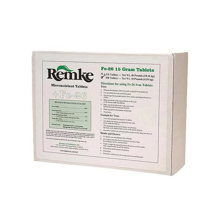 Use once annually for best results. Application rate example, 6″ tree will use 36 tablets. Place 4″- 6″ below ground at drip line.Trees and shrubs most susceptible to iron chlorosis are: Azalea, Rhododendron, Holly, Pin Oak, White Oak, Eucalyptus, Birch, Sweet Gum, Silver Maple, Poplar, Catalpa, Pine, Magnolia, Dogwood, Aspen, and Black Locust. Trees most susceptible to manganese deficiencies are: Norway Maple, Red Maple, Sugar Maple, and Ornamental Cherry. 290 iron tablets/10 lb case