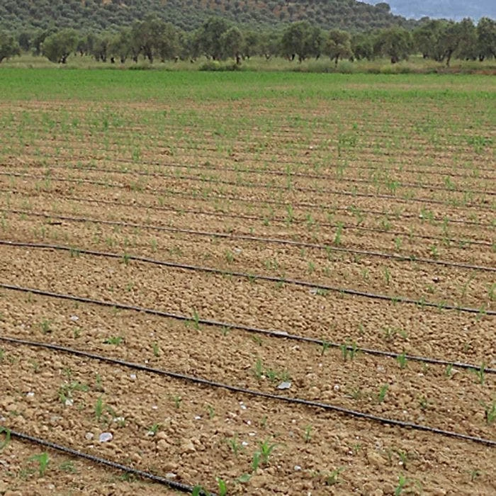 This Irritec line is ideal for spacings of 20 centimeters or more. The flat dripper guarantees reduced localized load loss. This line offers uniform watering throughout the entire line, allowing for longer branches. When buried in the soil, a protected flow system prevents problems caused by the aspiration of mud and detritus. This protection also reduces the risk of root intrusion.