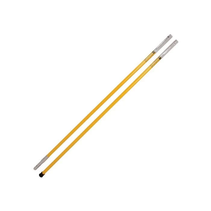 - Two 6′ fiberglass poles; one base pole with rubber end cap, one add-on pole with male/female ends
