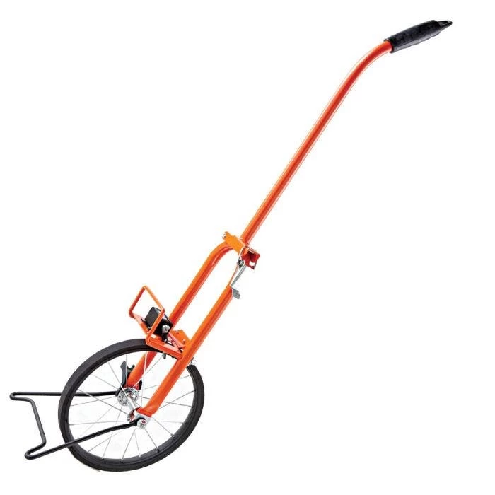 The Keson Professional Wheel has a 3ft diameter, is very well balanced, and designed for durability and simplicity. It rolls easily over the toughest terrain and has centerline construction for great balance. The frame is made of 3/4 inch steel tube. It has a large easy to read counter that measures in feet and a metal shelf to protect the counter from dirt and debris. The counter is a 5 digit counter that can measure up to 99,999.