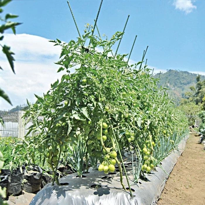 Ring spacing is closer together near the bottom and increases as it goes up, to coincide with a plant’s growth. Double rings every 50 cm help you insert to an even height. Protruding rings offer more tie off areas. Waterproof, heat-sealed caps stay in place. The look and feel of bamboo, with the strength of steel. Durable heavy gauge steel in all-weather, polyolefin resin coating won’t warp, rot or rust. Resists chemicals and lasts for years. They are in an attractive “plant green”, to blend in with foliage. Priced per bundle of 10; call for special pricing on 2,000 or more