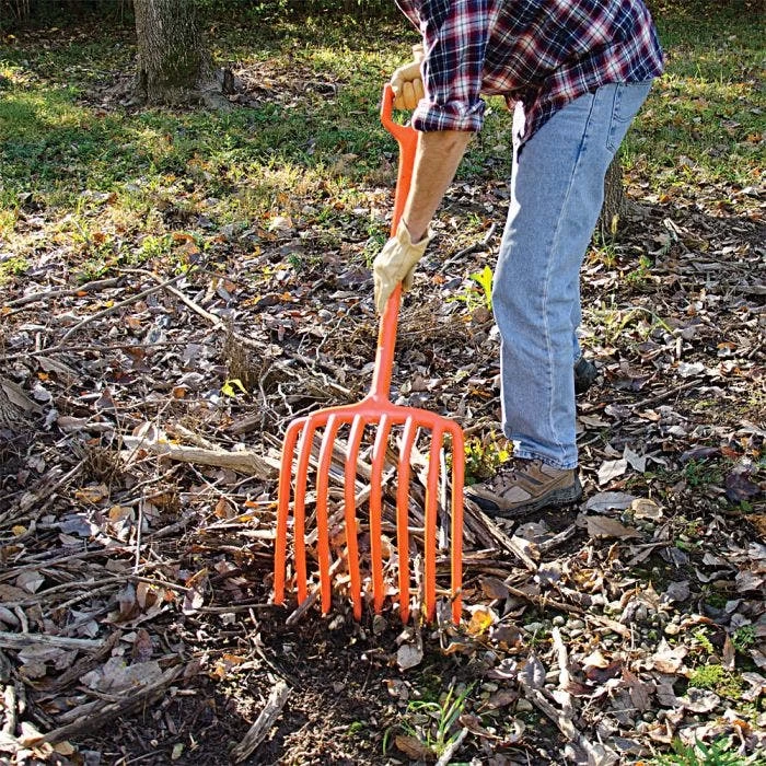 Use this durable and lightweight fork to handle your tough day-to-day work. Use it to move piles of mulch, compost, leaves, hay, or straw. Our extended D-grip handle provides excellent balance control. The beveled and scoop-shaped tines allow for larger load capacity. The 1-3/8-inch tine spacing results in less spillage.