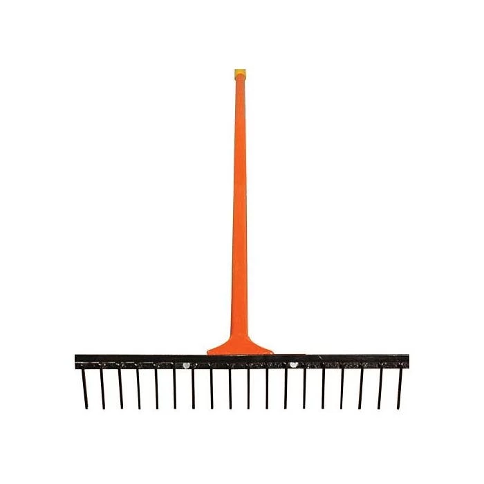 Leonard All-Steel Straight Rakes feature a steel head. This head has 3-1/2-inch welded teeth. Choose your desired head size below. We equip the all-steel head to a 66-inch long handle. We make this handle using tempered and heat-treated steel. We powder-coat it to protect it from rust and corrosion. We cap the handle with a comfort grip to reduce fatigue during prolonged use. The head and handle connect via a reinforced T-connection. The bolt design allows for an easy head to handle assembly. Leonard All-Steel Rakes are excellent for grading and leveling. Use the teeth to spread your material and flip the rake over and use the flat side to level it out. Their all-steel construction ensures that they last through even the toughest tasks. From head to handle, we designed these rakes to last. The heat-treated teeth flex, preventing them from bending or breaking. We back the quality of this tool with a lifetime warranty!
