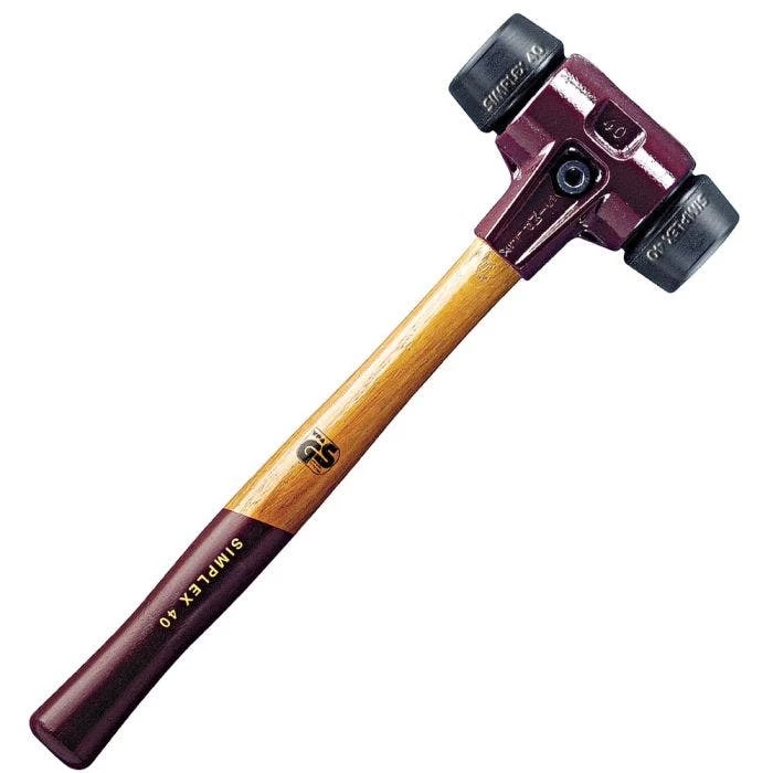 This simplex 3-1/2 lb paver mallet is equipped with 60mm replaceable faces. It comes with black rubber inserts. It features a strong, hickory handle. A cast iron housing holds it all together. With a long list of uses, Halders simplex mallets have become a hardscaping must!