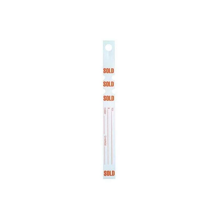 Bold, bright red letters on all-weather, .015 rigid vinyl. 1 x 10″ label, 1/2″ “SOLD” lettering. Space for customer name, price, etc. New packaging. 1000 per roll, 5 labels side by side on roll.